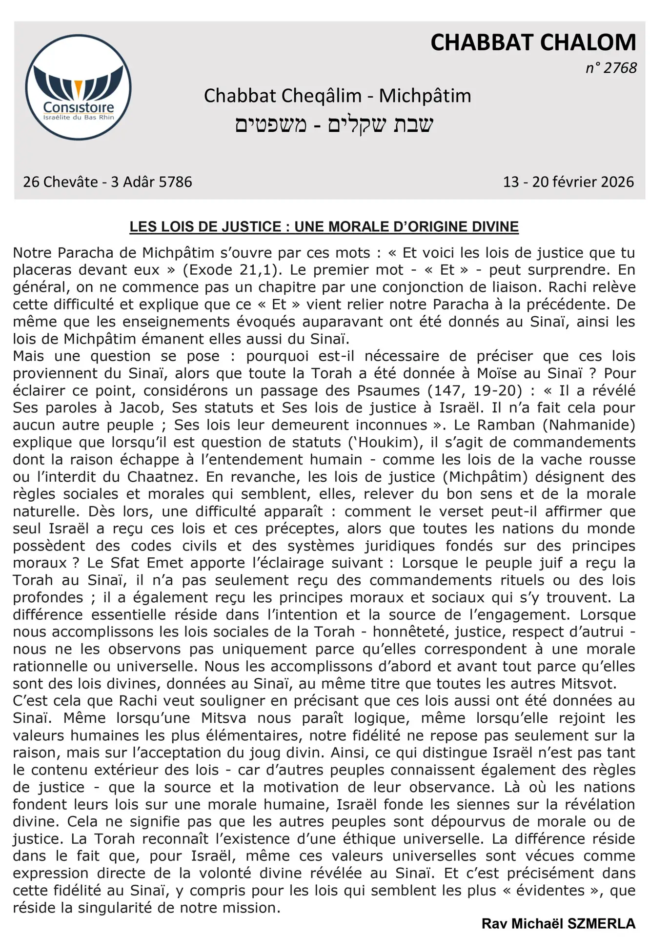 2768 – Cheqâlim - Michpâtim